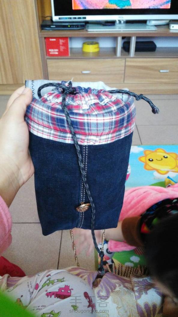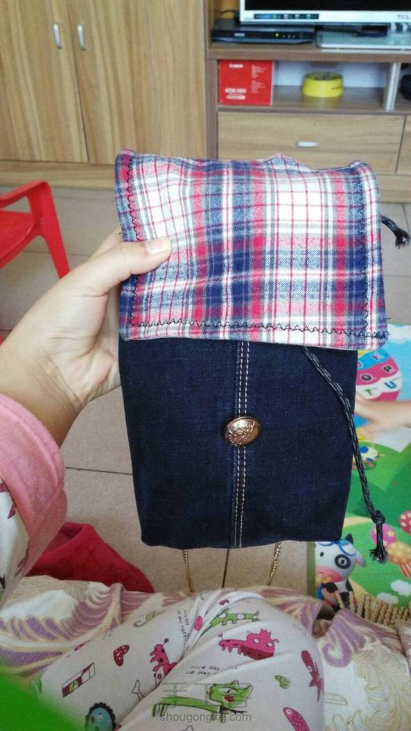 第一次用缝纫机的作品,好开心。牛仔裤再也不乱扔了