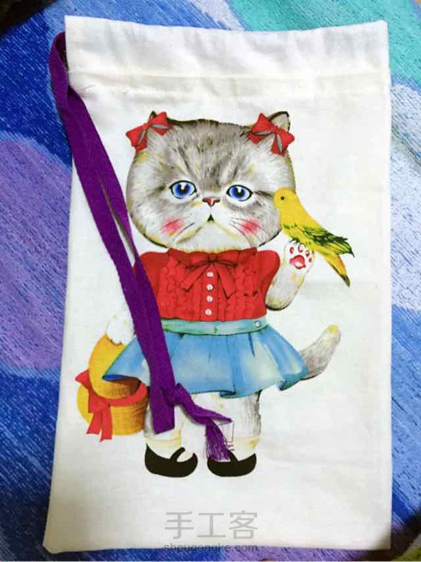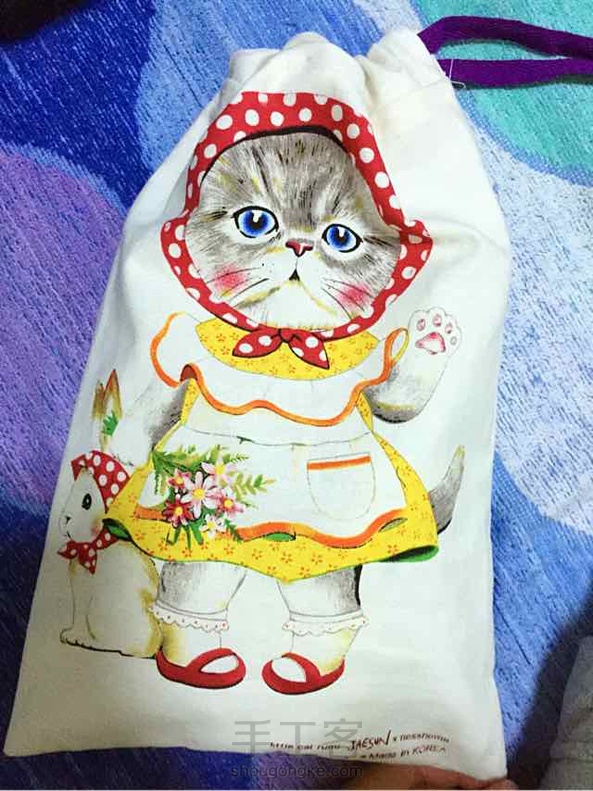 简单的束口小布包,美在布上的韩国小猫,和我的中号书包比下大小,用来装出门旅游的内衣袜子再好不过。
