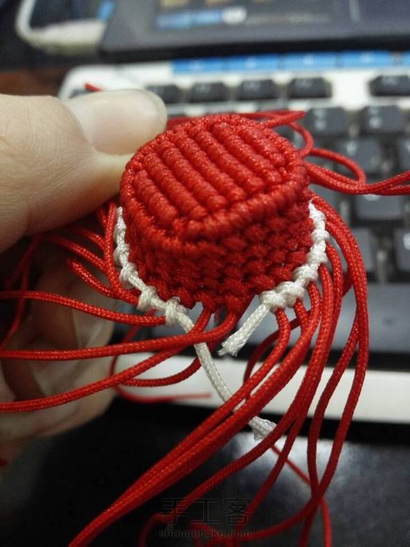《我用72号玉线编的。在雀头那两截里,哪一根做轴线,哪一根做绕线?我是按照短线做轴,长线做绕来做的,最后的扣眼部分,我觉得线不太够,但是没有了,我就结尾了,给大家做个参考》