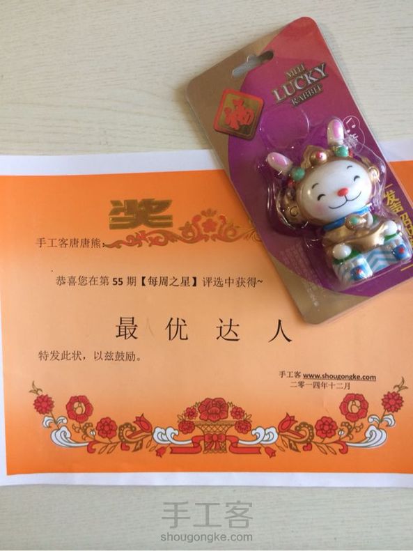 哇,一早收到奖品哦~谢谢手工客,还有奖状嘞~追溯到上次得奖状,得是25年前了吧!好感动!谢谢手工客对我的鼓励和肯定,更感谢工作人员,辛苦啦!