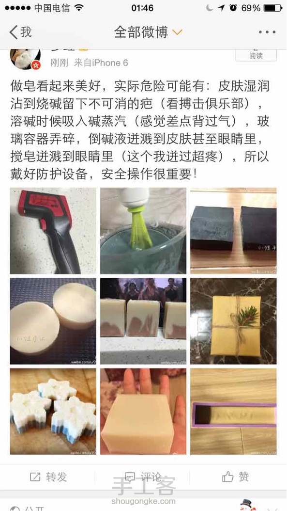 瞐瞐手作工作室:做皂一定要戴口罩眼罩手套 如果意外弄到皮肤上 用稀释后的醋水喷上就可以了