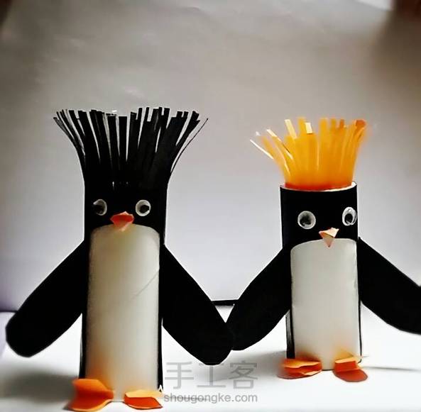 可爱的小企鹅兄妹---Pingu和Pinga 材料~ 卫生纸筒、卡纸、彩纸、眼睛……