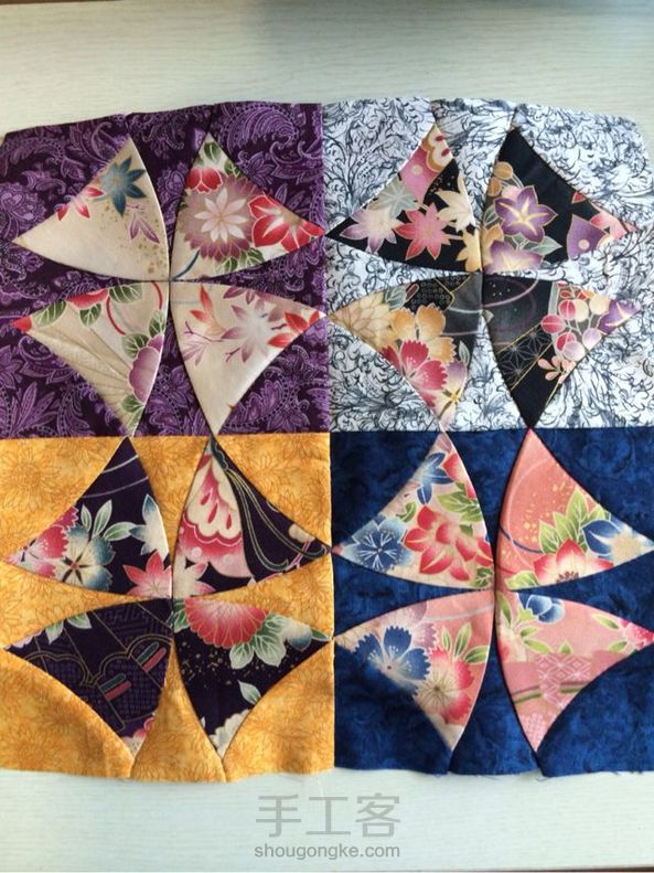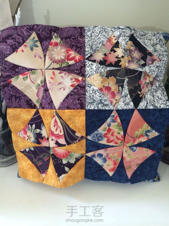 拼布图谱:蜿蜒之路 完工!布料选用颜色明亮的大花图案和饱和度低的小碎花搭配