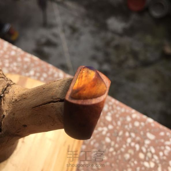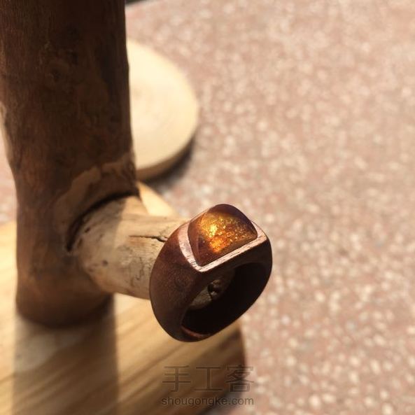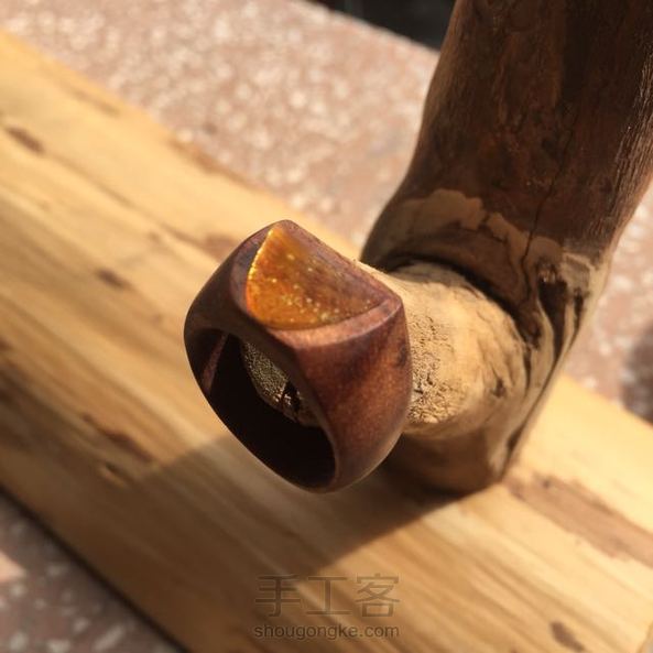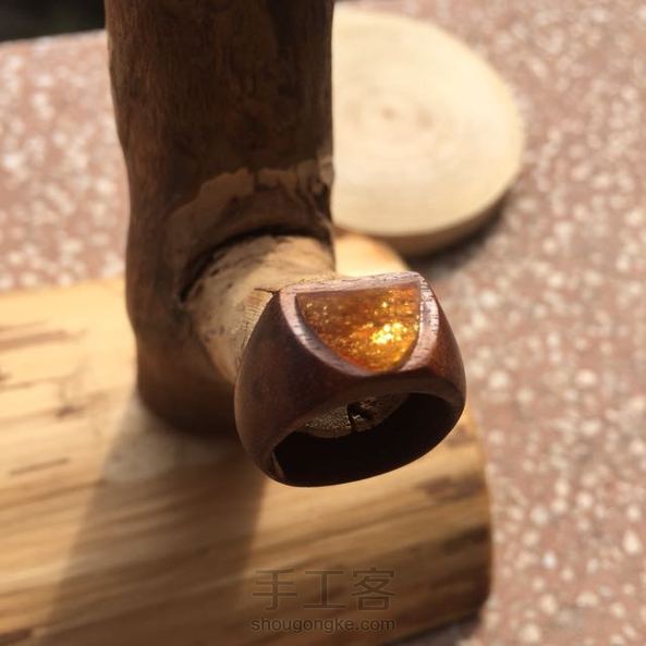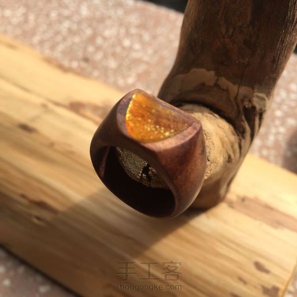 【SageLog森萝木作】一面弧型一面平,一份圆滑一份棱。光线通过琥珀把木头里的矿物班折射得异常璀璨。照片拍不出它一半的美丽。内径16.8mm,仅此一支。(一拍照就天阴没法照了,摔!)