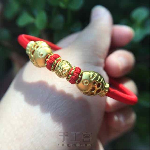 萌猴被闺蜜相中直接带走了,又编制了条金鱼手环,没有金猴萌。但可以警示自己逆流前进、奋发向上。 灵感枯竭开发不出新款式,还延续了原来的风格,只不过把胶管换成了电线,拿着有份量。