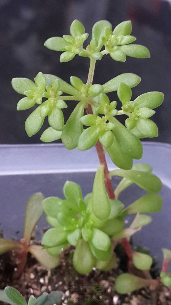 小丫2号,景天科,多岐聚伞花序,与1号同,花略小,水分对叶形叶色影响明显。谁帮鉴定😂😂😂