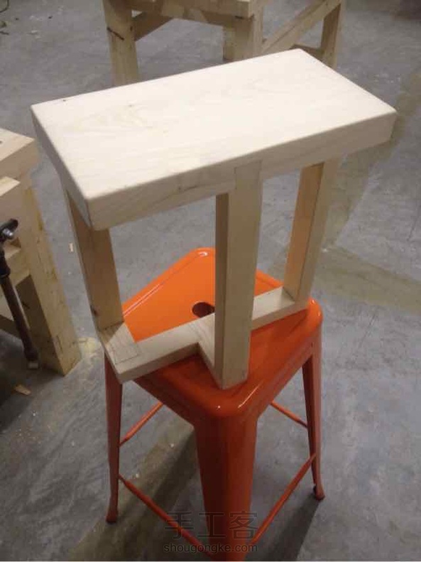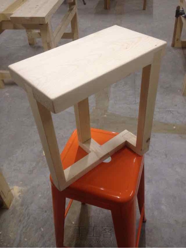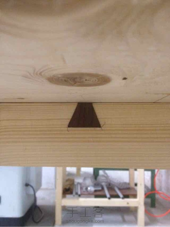 一张八叉开榫台,有裂打了元宝榫;一张三腿凳,最后是一张开榫工作台的腿面连接。(因为文字少,多谢管理员提醒,再发咯)