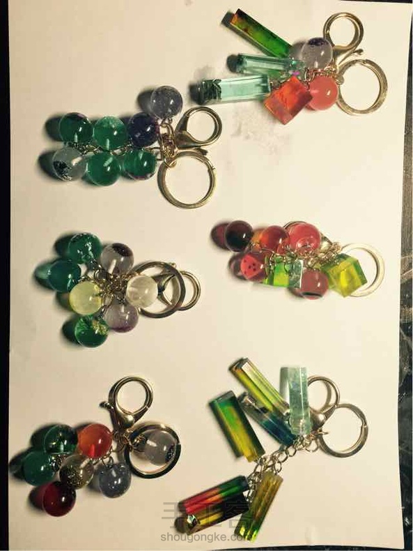 每次用剩的胶都做成小球球小方块,一口气都穿成了钥匙扣。