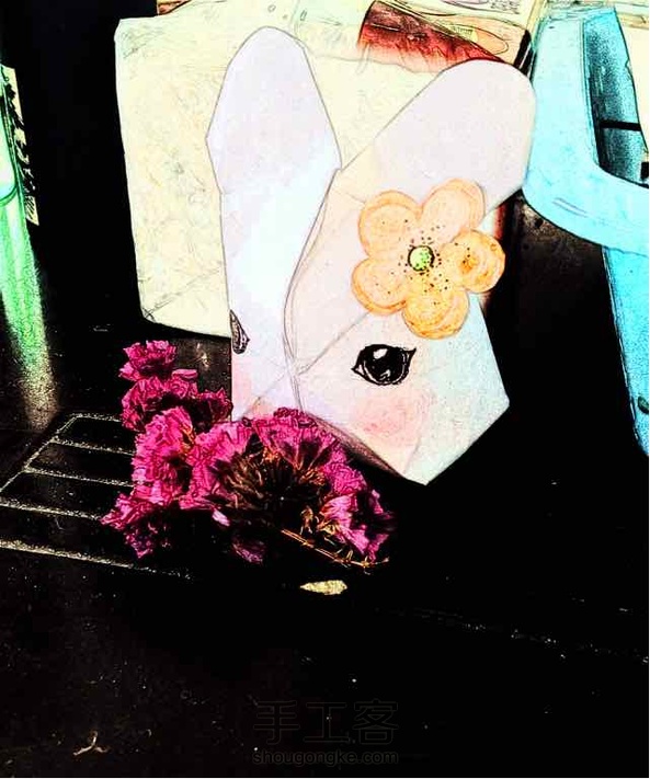 折纸小兔子,画了眼睛贴了小花感觉萌萌的。