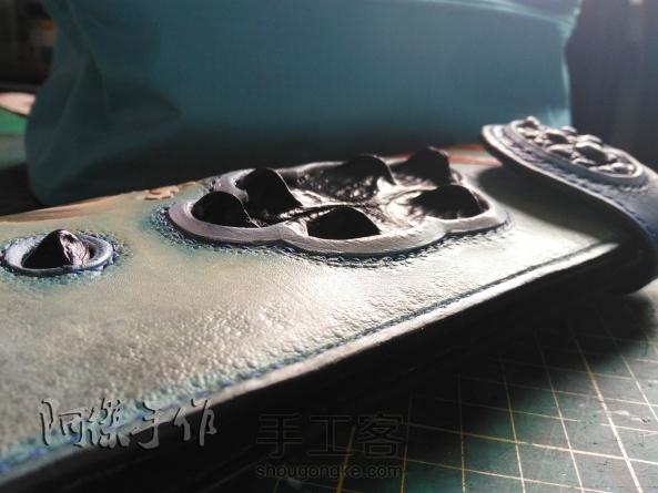 鳄鱼骨镶嵌长夹 这个镶嵌,阿杰准备了好久,因为一只鳄鱼只有这一小片最结实最漂亮的头盖骨,淘这个骨头,远比做钱夹辛苦。镶嵌成魔,我迷上了这种工艺。 鳄鱼在传说中是龙的一种,而跳过龙门的鱼是飞黄腾达的象征,取的是这个意思。