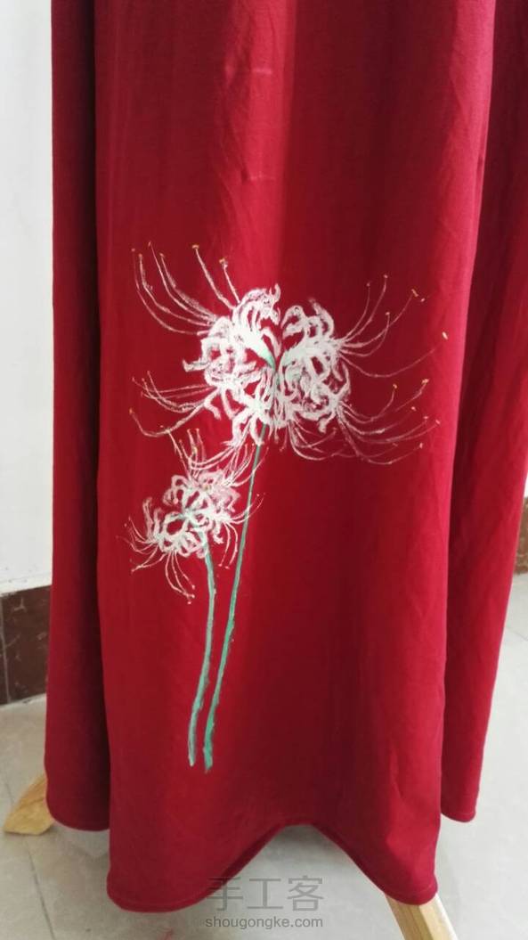 昨晚做好,画好,已经半夜了!困啊~曼珠沙华,彼岸花开~配套上衣还在做,先用别的配着。