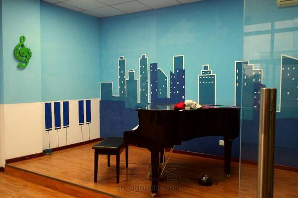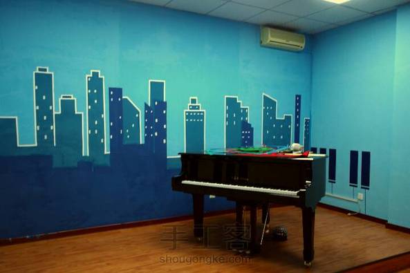 墙体绘画 钢琴培训教室室内彩绘