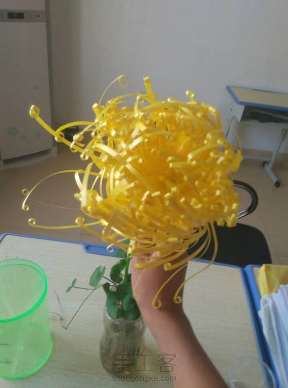 废弃的彩带做的菊花,不过不好看