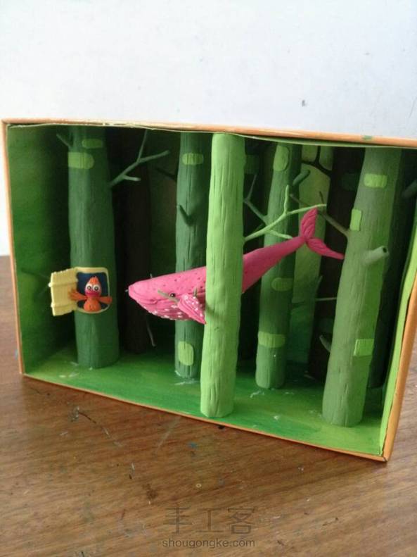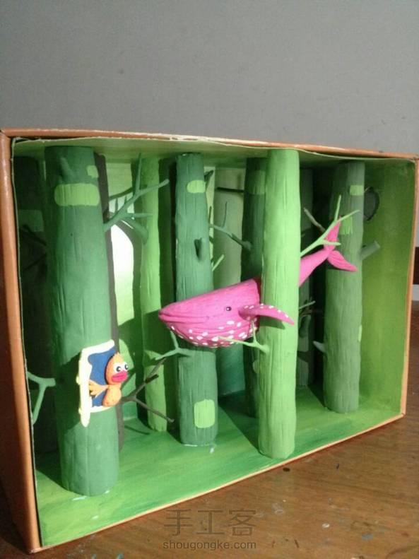 今天完成的粘土作品!(是临摹别人的作品)别人的是平面的!我用鞋盒的!