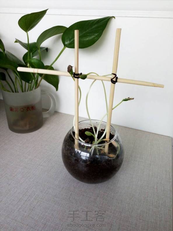 给小西瓜苗撘了个花架,结果中午没筷子吃饭了😂😂😂