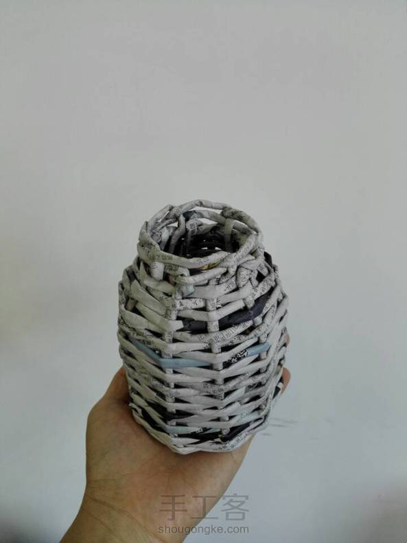 又用报纸编织了一个花瓶,插上用皱纸做的粉色郁金香,超级温馨(^_^)