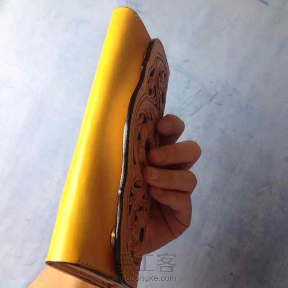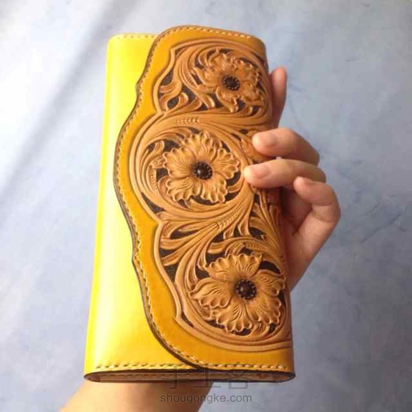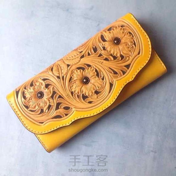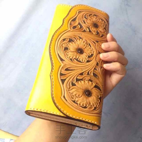 皮雕长夹,复古雕花、招财黄、颜色渐变,精美精致完美绽放,大容量,内有拉链格