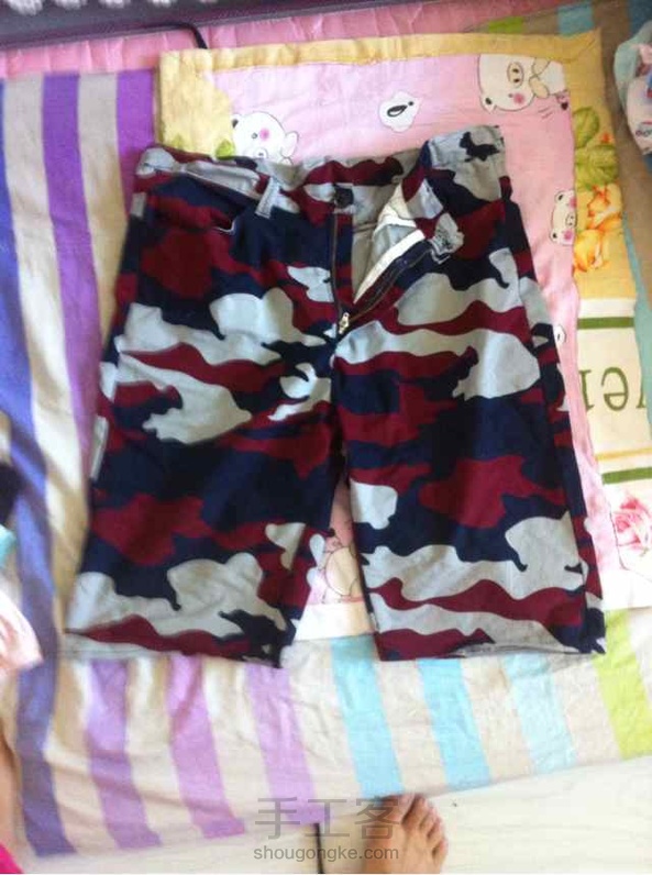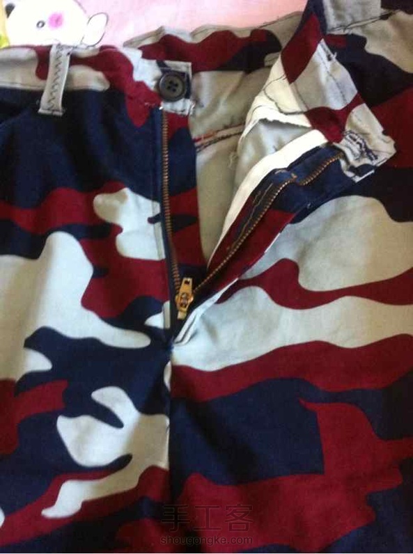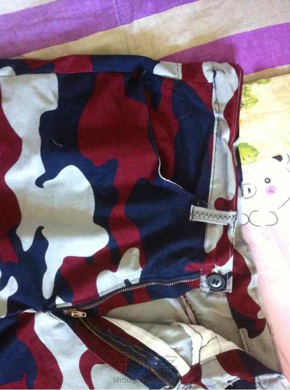 第一次给老公作裤子。没给他量尺寸;照他旧裤子裁的,做肥了