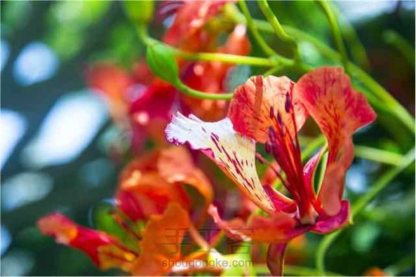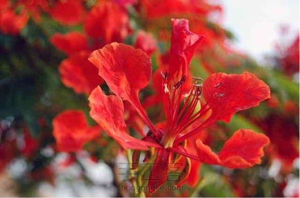 凤凰花火凤凰树的花。火凤凰又名红花楹、火树,五月开花,花五瓣,花大美丽,呈鲜红色带黄晕;花开时满树结花,火红一片,与绿叶相映成趣。 凤凰花 花语 :离别、思念、火热青春