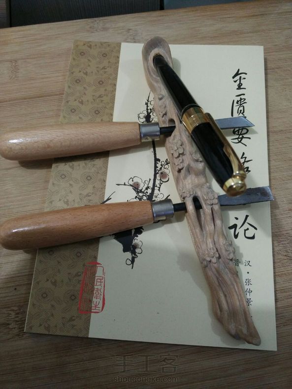雕个梅花小笔托!
