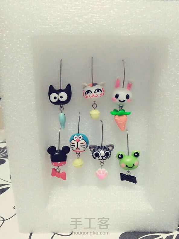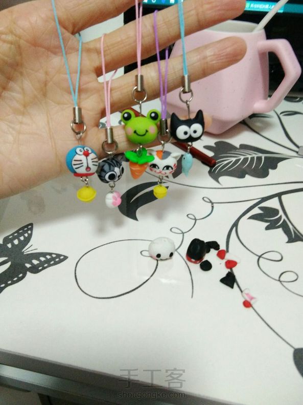 手机/钥匙软陶小挂件,没烤箱,开始清蒸不成功,后来用吹风机吹的,有两个薄的地方太脆弱,只能报废了,