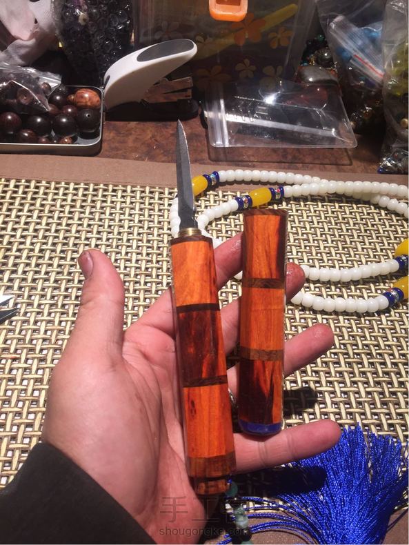 虽然不喝普洱 但是特别喜欢做茶刀 小叶紫檀夹镶黄花梨 隐锋茶刀
