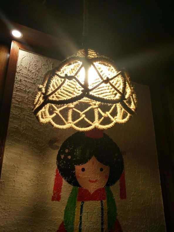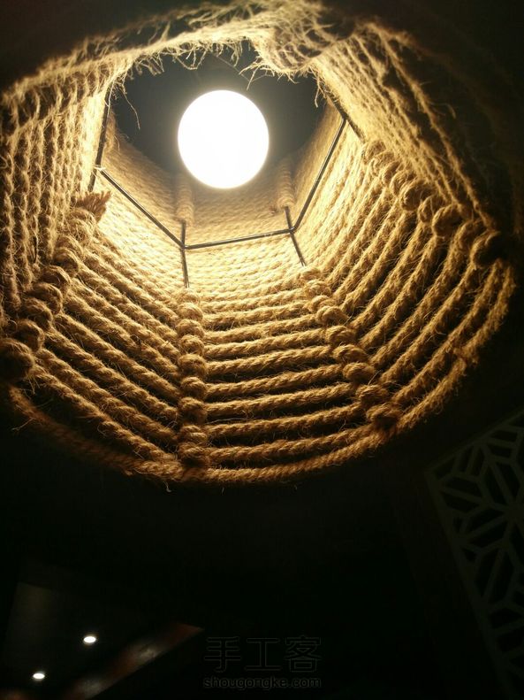 今天拍了几款麻绳灯。先拿铁丝做框架,再绕麻绳,又是一个动手打造美家的创意。