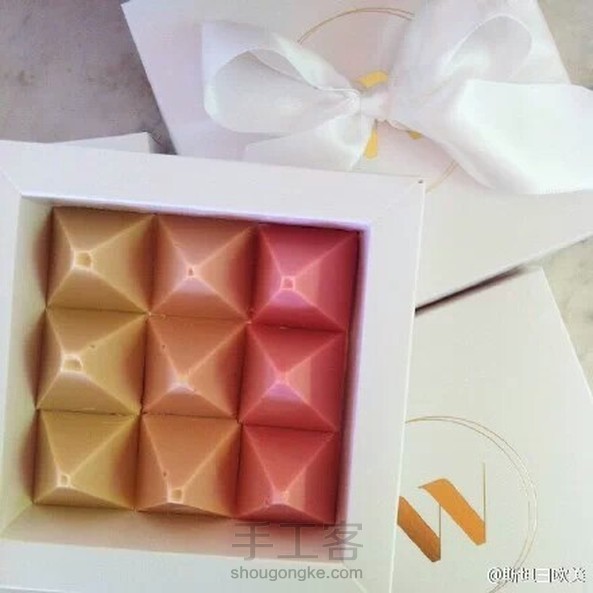 悉尼的WINNOW渐变色巧克力。难能可贵的是这是巧克力设计师Amanda Mckeith纯手工,无色素和植物油的天然印象派巧克力“画作”。