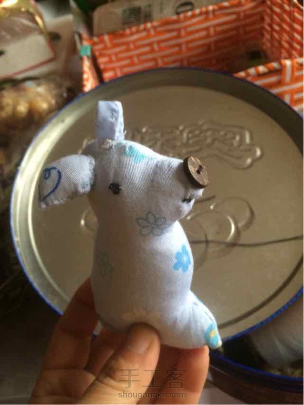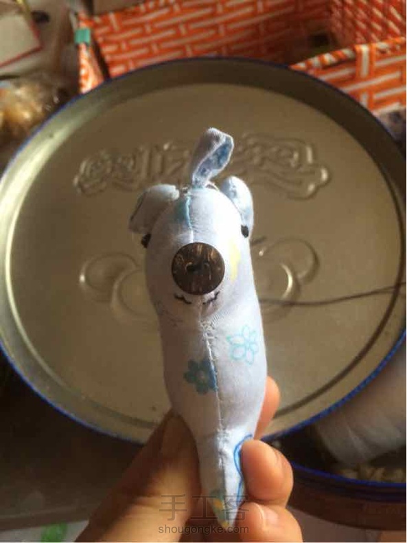 本来想做个小狗挂件的,一不小心做了个呃~~长的像啥呀?丑爆了,还是藏在盒子里做个针插吧[偷笑][偷笑]