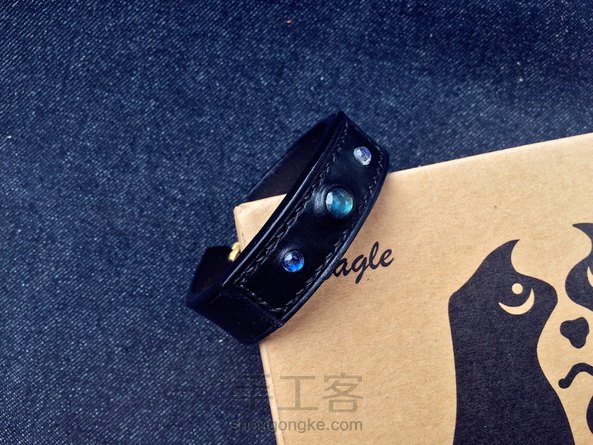 拉长石和月光石与皮手环。只有全黑的皮子才能把石头的美衬托出来