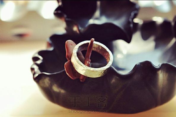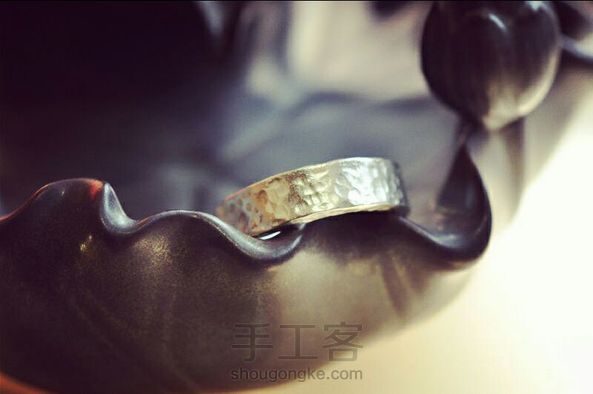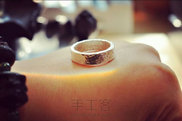 上个月打的一枚锤纹戒,有点星球表面的感觉,亮面也挺好看的,288出的,客人们超级喜欢,下次做个锤纹戒指的教程