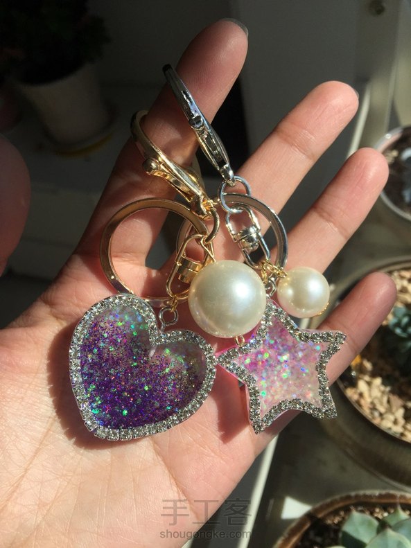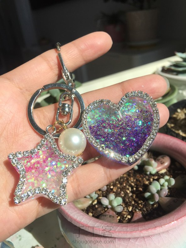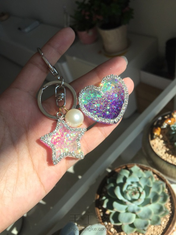 中午做了两个闪瞎眼的钥匙链,一个送给朋友,一个留给自己。😊