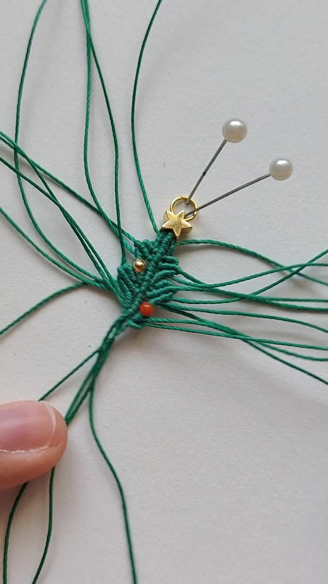 圣诞树款耳坠胸针编绳教程二