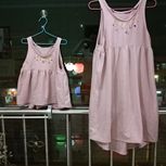 母女装粉红色吊带裙配白T是是极好的,加了闪闪的钻钻点缀不错😊