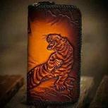 虎是尊贵、勇猛、威严的象征。把兽中之王用皮雕的艺术淋漓尽致的表现了出来,生动有神。猛虎能为辟邪、逢凶化吉、佑互平安之意。虎的王者之姿,寓意财权在握,财运亨通,财源滚滚,好运不断,步步登高!!