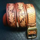 手工雕刻唐草皮带