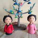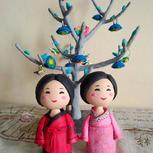 前几天又看了遍方文山的听见下雨的声音,对里面的汉服娃娃念念不忘,就做了一对。看着好萌。。
