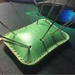 家里放着当初第一次自己琢磨着做的各种出错的巨丑无比的短夹,拆掉用半个外皮做了个针插。(其实只有带线的是我的针其他都是我奶奶玩丝带绣十字绣的针😂)