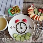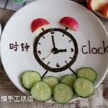 5.25小宝的早餐:玉米渣粥,胡萝卜玉米毛豆粒,苹果,青瓜,草莓,闹钟(海苔,面条,黑巧,苹果,青瓜) “妈妈,这个是什么字?” “时钟。” “这个呢?” “9。” “老狼老狼几点钟?” “老狼老狼3点钟,闹钟现在3点钟!” 嘻嘻……