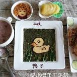 5.26早餐:红豆粥,煎鱼,阿姨(芝士片,肉松,蔓越莓),弥猴桃,小鸭子(芝士片,胡萝卜,黑巧,青瓜皮,海苔)