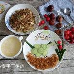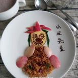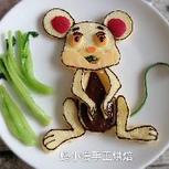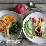 5.21早餐:焗土豆泥(芝士,土豆,火腿丁,蕃茄丁,葱),炒龙须菜,腌萝卜皮,鸡蛋,豆浆,水果(草莓,香瓜),可爱的熊猫(菜叶,青瓜皮,蛋,海苔,橙子) 有朋友问这是你的原创吗?很多造型我都会在网上查找自己喜欢的图片,然后根据家里现有的材料自由发挥拼出自己喜欢的图案,不是一成不变,毕竟自己也是学习