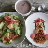 6.3早餐:蔬果沙拉(苹果,青瓜,西红柿,包生菜,炒豆子),红豆粥,小丑先生(苹果皮,青瓜皮,李子皮,芝士,蔓越莓,黑巧,肉松)