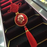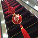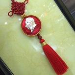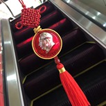 ‘光芒’ 用红线将红色的毛主席像章包边,扩大延长了像章。外边加了一圈金线尤如万丈光芒一样闪耀。 定制车挂的朋友!毛主席保佑你平平安安!