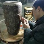 【均陶】又一款龙凤呈祥签筒,高38厘米,在室内室外一样冷的环境下好不容易做好的