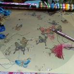 用针在丝绸上做的画