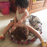 给新来的旺财做的狗窝,被娃霸占了