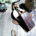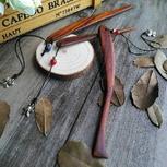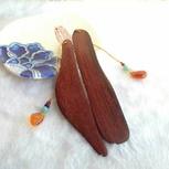 之前做的。一块印度小叶紫檀木,中间有裂,分开来做了一对书签,相依相偎,质朴有趣。配琥珀,青金,天河石,红玛瑙,木头和琥珀都是自己手工打磨抛光完成。