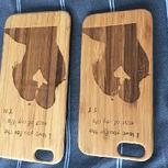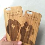 给朋友雕刻的情侣竹质手机壳