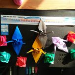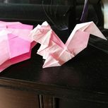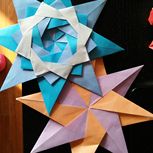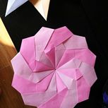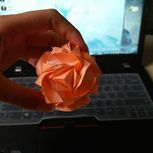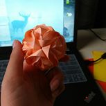 两个小时折出来的,效果很漂亮,花心可以顶出来,一纸成型,用的是无印良品的彩纸。