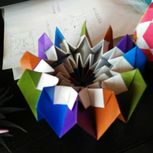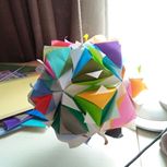 Miranda Star花球,折的是大的,不难,效果很好,把所有颜色的纸都用上了……